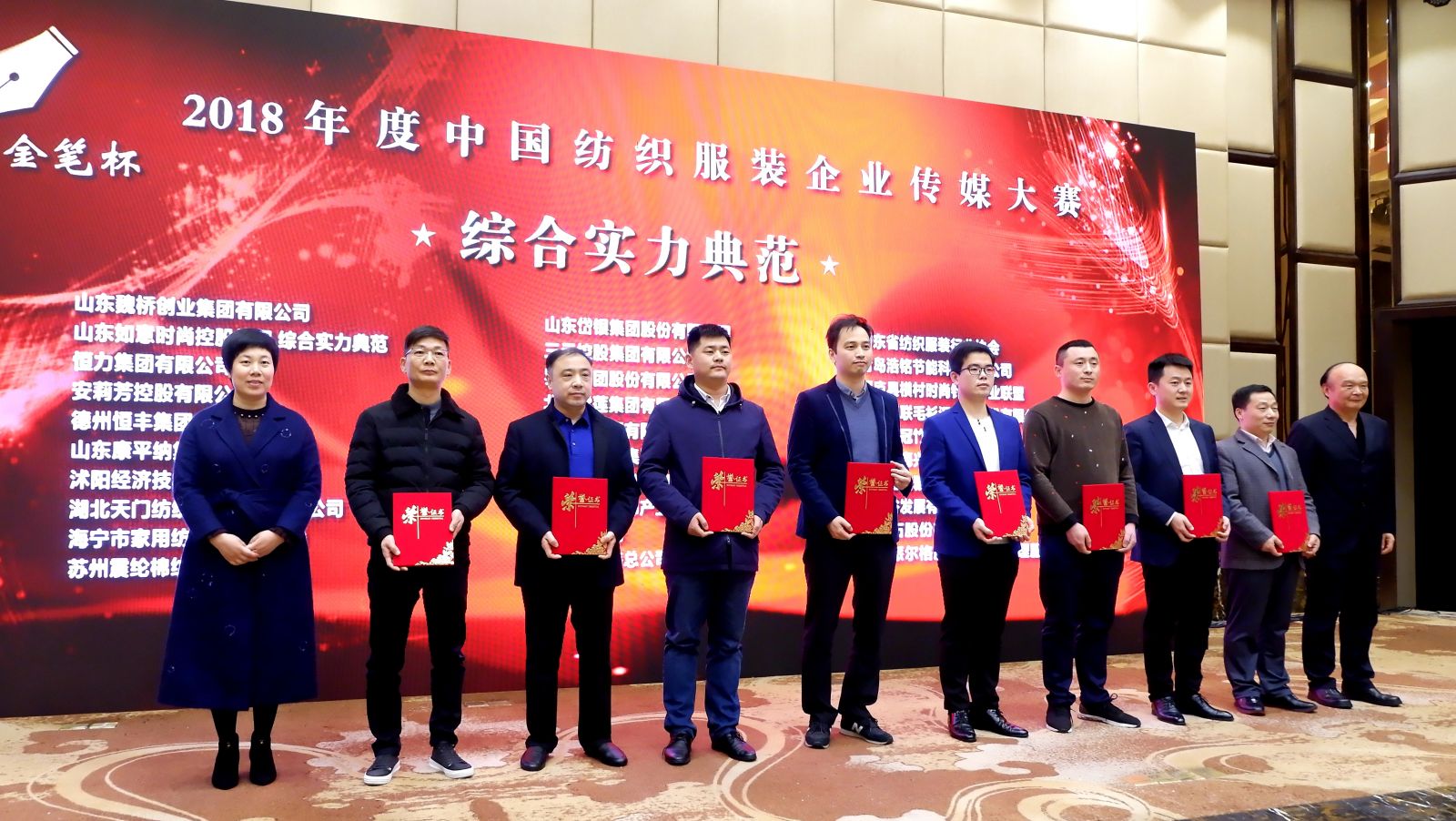會上,“金筆杯”2018年度中國紡織服裝企業傳媒大賽隆重揭曉,天門紡機榮獲“綜合實力典范”榮譽稱號,天門紡機總經理焦倫進榮獲“創新先鋒”榮譽稱號。