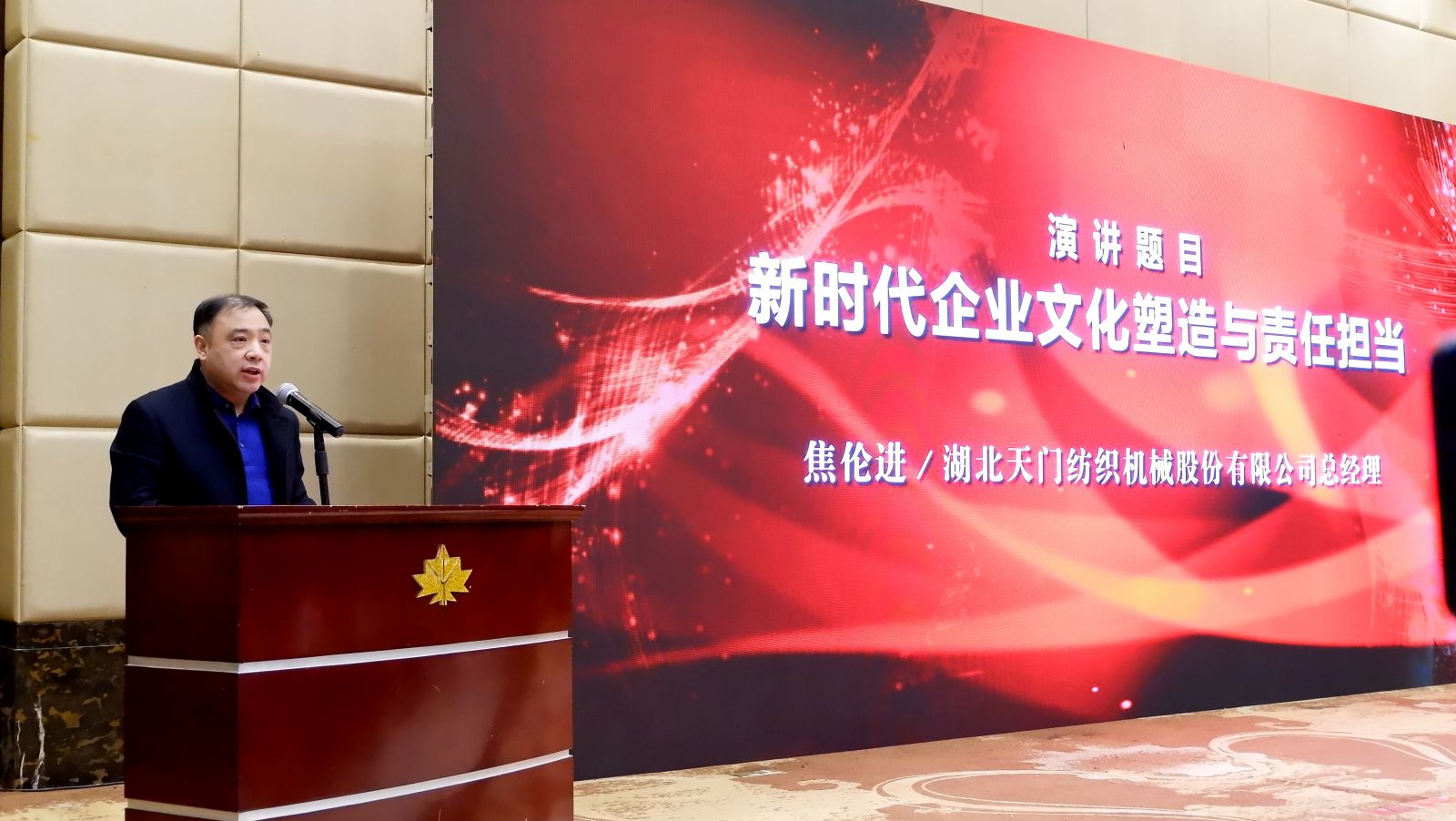 在會上,湖北天門紡織機械股份有限公司總經理焦倫進作了《新時代企業文化塑造與責任擔當》主題發言。他表示,這次傳媒大會的召開,對于充分發揮新聞媒體的宣傳和輿論導向作用,推進行業發展,進一步提高企業的知名度和美譽度,具有非常重要的意義。他談道,天門紡機歷來非常重視新聞媒體的宣傳導向作用,公司內部創辦了“天門紡機報”,建立了“湖北天門紡織機械股份有限公司官網”、“天門紡機微信公眾號”,利用微信平臺在公司內部建立了8個微信工作群,獲得了中紡聯“創新管理獎”。