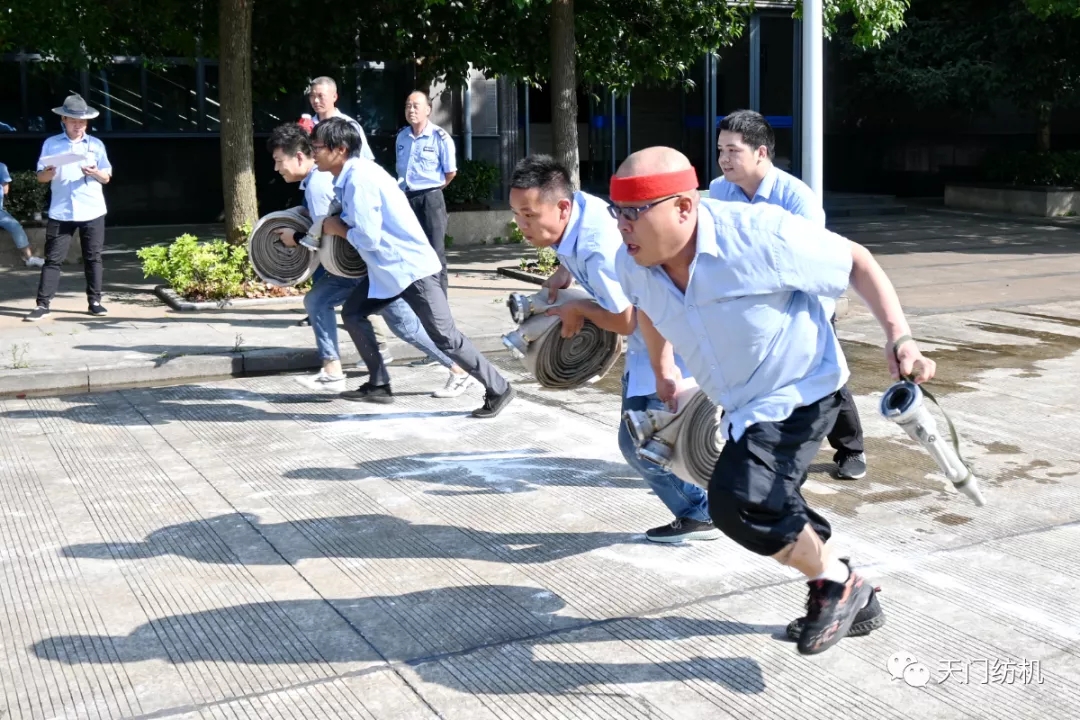為鞏固“安全生產月”活動效果,檢驗消防應急處置能力,7月24日,天門紡機經過認真籌備,舉辦了年度消防技能競賽活動,活動分為滅火器接力撲救火災和消防水帶協作兩個項目,來自公司各部室、車間的8支隊伍參加了競賽。