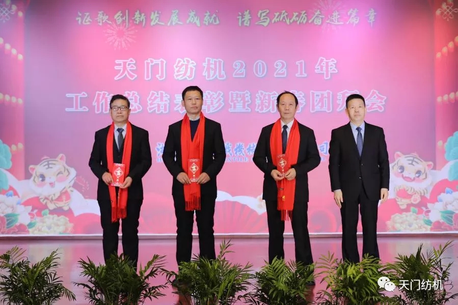 董事長沈方勇致熱情洋溢的新春賀詞,他表示,天門紡機走過了激情奮斗、碩果累累、超越自我的2021年,回首“退城進園”、轉型陣痛、市場洗禮、疫后重生的十年,公司“專精特新”的發展之路不曾改變,研、產、供、銷的“六高”閉環不曾動搖,“單項冠軍產品”的頭銜始終沒有丟失,技術創新度、品牌知名度、市場占有率、產品附加值同步提升、屢攀新高。感恩偉大祖國,感激業界同仁的支持信賴,感謝全體員工的團結拼搏、風雨同舟、辛勤付出!