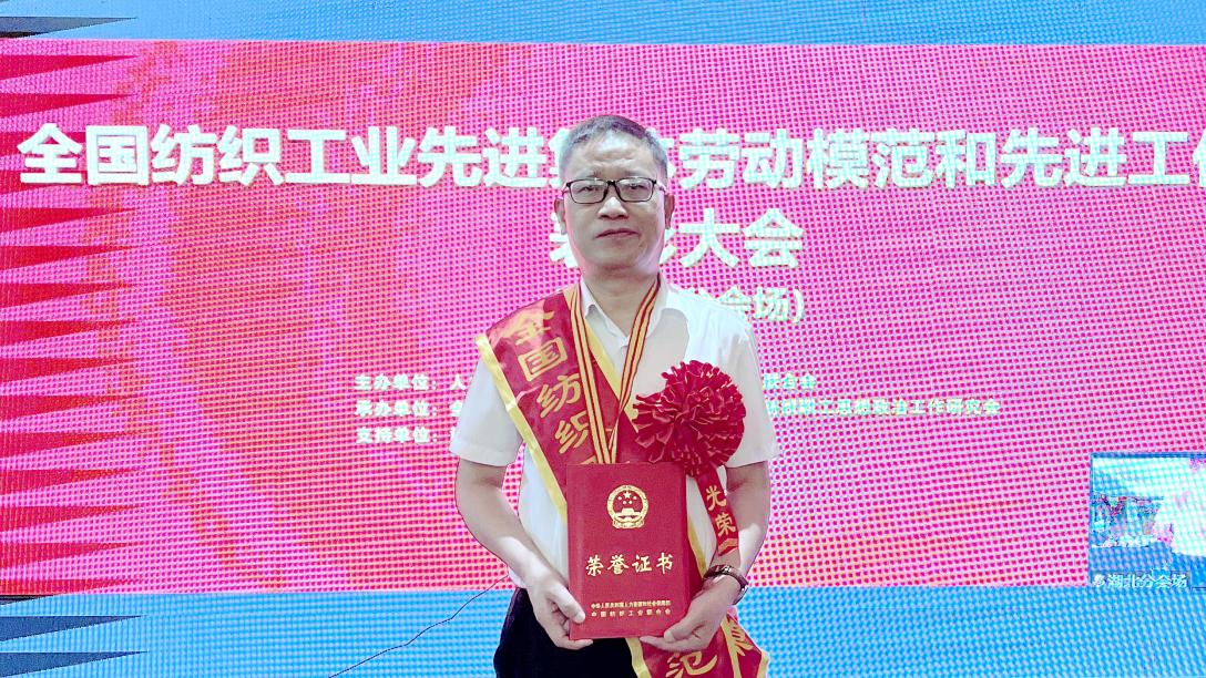2022年7月12日,喜訊如潮。人力資源和社會保障部、中國紡織工業(yè)聯(lián)合會在北京召開會議,表彰了一批全國紡織工業(yè)先進集體、勞動模范和先進工作者,天門紡機總工程師鄭強獲“全國紡織工業(yè)勞動模范”殊榮。