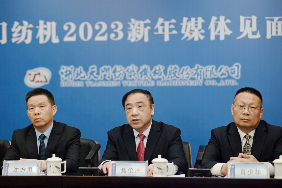 圍繞“疫情三年,天門紡機如何實現逆勢發展”的話題,湖北日報、紡友網、中國紗線網、紡織機械雜志社、中國紡織雜志社、天門電視臺、天門日報、湖北廣播電視臺、棉紡織技術期刊社、中國紡織報等10家媒體分別提問,天門紡機董事長沈方勇、總經理焦倫進、副總經理肖少華、楊文峰和品控總監樊早斌等一一作出解答。