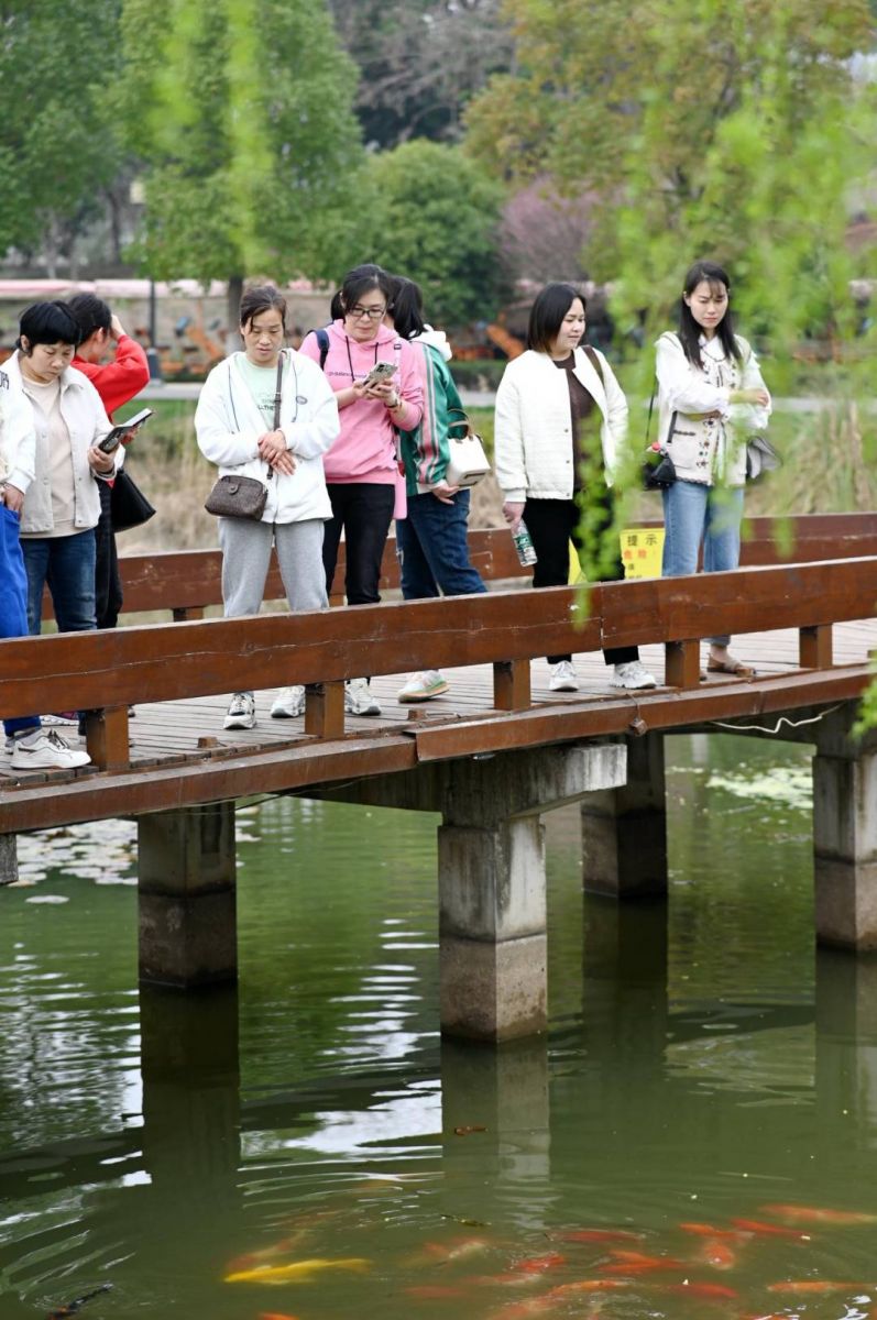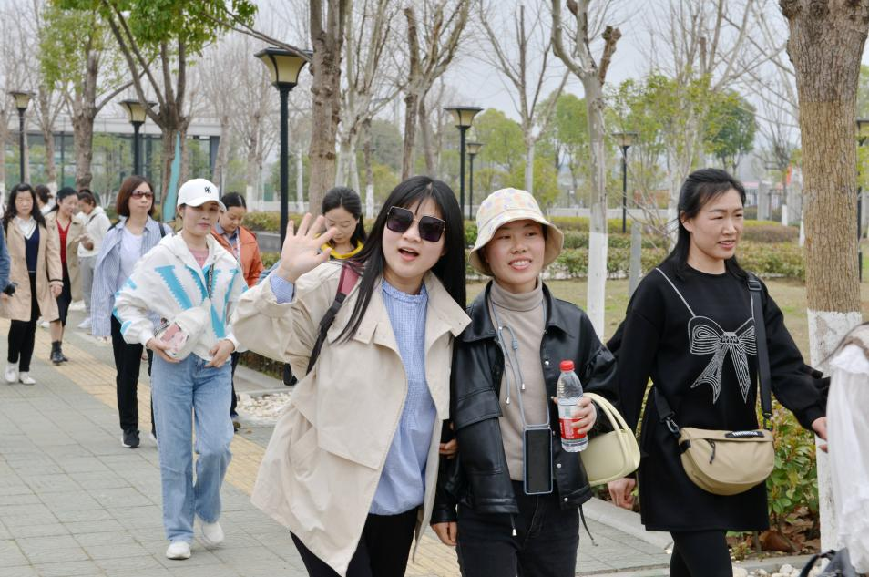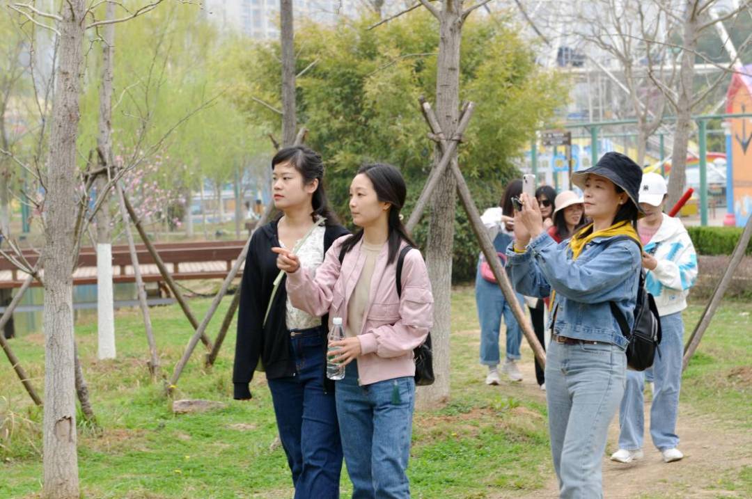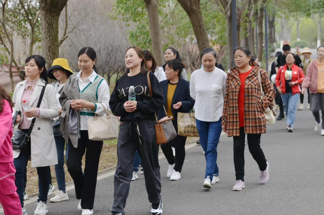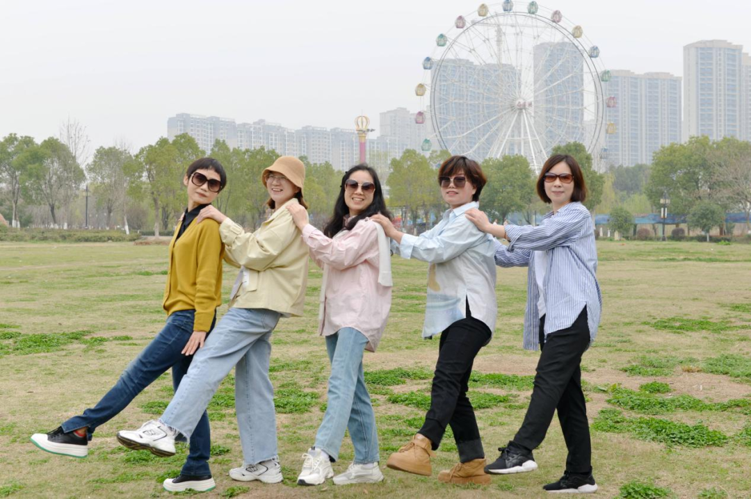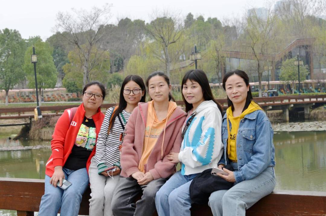 伴隨徐徐春風(fēng),“娘子軍”踏上了旅程。大巴上,大家一起玩游戲,唱車(chē)載KTV,一路洋溢著歡聲笑語(yǔ),轉(zhuǎn)眼便抵達(dá)第一站——后官湖國(guó)家濕地公園。
