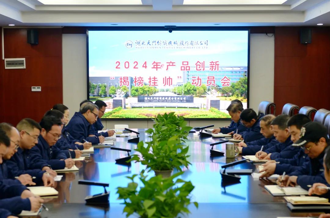 3月1日,天門紡機在科技樓隆重召開2024年產品創新揭榜掛帥的動員會。公司董事長沈方勇、總經理焦倫進、副總經理楊文峰、總工程師鄭強及全體研發人員參加會議。
