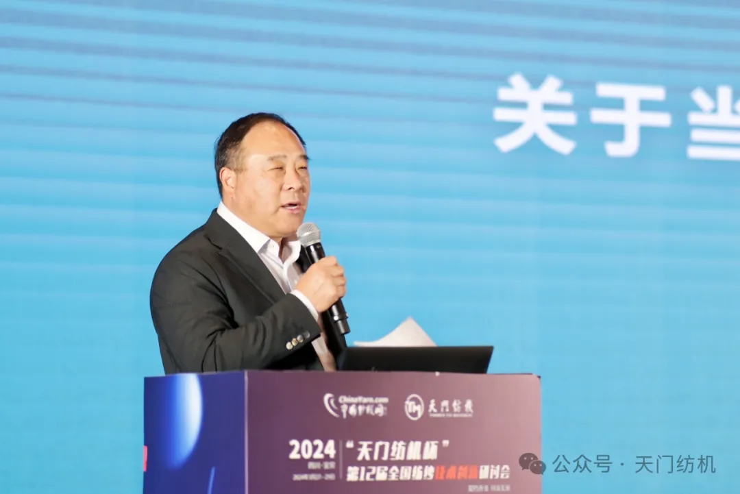 公司焦倫進(jìn)總經(jīng)理介紹了天門紡機(jī)產(chǎn)品開發(fā)情況,剖析了行業(yè)形勢(shì)和企業(yè)面臨的機(jī)遇與挑戰(zhàn)。他說,天門紡機(jī)作為并條機(jī)的專業(yè)生產(chǎn)廠家,不斷加大研發(fā)投入,專注于技術(shù)創(chuàng)新和產(chǎn)品研發(fā),不斷探索新技術(shù),成功研發(fā)并推向市場(chǎng)的TM11、TM13、TM15、TM17系列并條機(jī)已成為行業(yè)主力產(chǎn)品。公司倡導(dǎo)“并條工序全自調(diào)勻整”的理念后,推出了TM19大圈裝高速自調(diào)勻整并條機(jī),并已在多家國(guó)內(nèi)知名紡織企業(yè)推廣應(yīng)用,效果十分明顯。在2023年11月舉行的上海國(guó)際紡機(jī)展覽會(huì)上,公司推出的TM25、TM27、TM29、TM35等四款并條機(jī),因擁有智能在線檢測(cè)、一控多軸多臺(tái)、數(shù)據(jù)管理云平臺(tái)等技術(shù),引起了業(yè)界廣泛關(guān)注,得到了高度評(píng)價(jià);他強(qiáng)調(diào),2024年,紡織行業(yè)仍將處于產(chǎn)業(yè)恢復(fù)期,市場(chǎng)逐漸回暖。同時(shí),紡織行業(yè)正處在朝高端化、智能化、綠色化發(fā)展的轉(zhuǎn)型升級(jí)關(guān)鍵期,市場(chǎng)潛力大,積極向好的發(fā)展趨勢(shì)逐步顯現(xiàn)。因此,2024年將是機(jī)遇與挑戰(zhàn)并存、困難與希望同在的一年。只要我們保持定力,加強(qiáng)交流合作,群策群力,不斷推進(jìn)數(shù)字化轉(zhuǎn)型和智能化改造,加快發(fā)展新質(zhì)生產(chǎn)力,就一定能開創(chuàng)更加美好的未來。