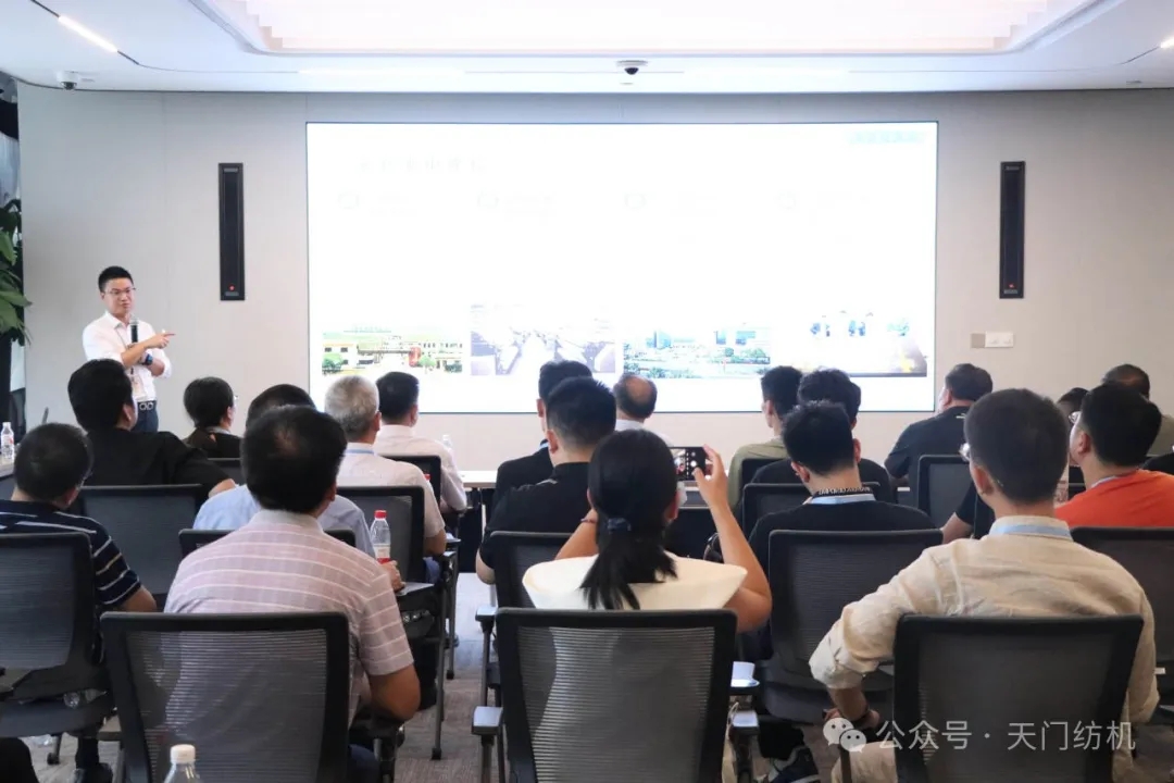 在游學班總結大會上,天門紡機總經理焦總對本次學習交流活動給予了很高評價,他說,傳承是企業賡續的靈魂,創新是企業發展的引擎。天門紡機從事紡機裝備生產經營40余年,起于深厚的文化淵源,得于不斷的產品創新。公司近些年推出的T1高速高效系列并條機已成為熱銷產品,目前正在研發的完全獨立傳動的T2系列產品呼之欲出,即將推向市場。他強調,隨著信息技術高速發展,智能化改造和數字化轉型已經成為行業發展的必然趨勢。為著眼未來,天門紡機投入大量的人力物力建設“智慧工廠”,促進公司“智改數轉”,并力爭通過自已研發生產的智能化裝備助推紡織行業“智改數轉”,實現雙贏。